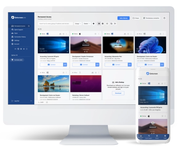 어디서든 원격으로 연결하여 빠른 고객 지원이 가능합니다. 겟스크린미는 효율성과 유연성을 향상시켜 고객의 모든 기기를 손쉽게 연결, 1:1 원격 지원, 멀티 상담원 동시 지원을 제공합니다.